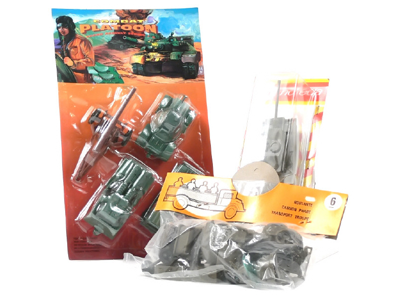 sous plastique jamais ouvert - on y joint un blister 'COMBAT PLATOON' (jamais ouvert & de marque indéterminée) contenant une JEEP, une ambulance, un canon & un blindé ainsi qu'un sachet de la marque NOREDA référence 6 jamais ouvert de 3 véhicules militaires à monter (contenant : une cuisine roulante, 2 MERCEDES porte-projecteur & transport de troupe)