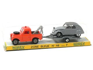 contient LAND ROVER dépanneuse & CITROEN 2CV sur remorque