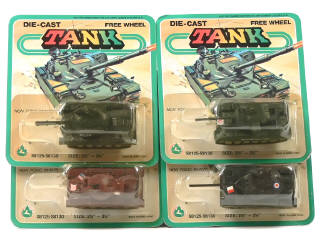 échelles comprises entre 1/100ème & 1/120ème - comprend : AMX 30 (blister en partie déchiré), CHIEFTAIN, STALIN & M60 AIEI - blister jamais ouvert