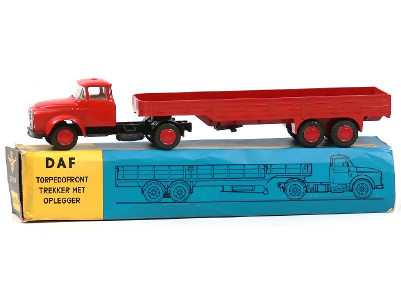 LION-CAR (PAYS-BAS) 33-34 DAF Torpédo semi-remorque plateau à ridelles basses rouge