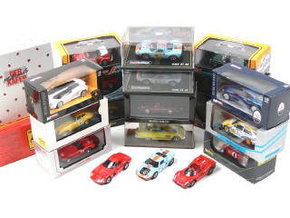 miniatures reproduisant les modèles : FERRARI, FORD, MG, VOLKSWAGEN, PORSCHE, LAMBORGHINI, JAGUAR & MASERATI - on y retrouve les marques : HOTWHEELS, EXEM, MINICHAMPS, JOUEF EVOLUTION, TOP MODEL, MONDO MOTORS & MODEL BOX
