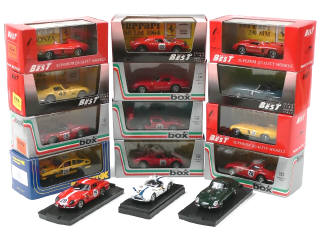 miniatures reproduisant les modèles : FORD, FERRARI, MASERATI, ALFA ROMEO & JAGUAR - on y retrouve les marques : MODEL BOX, MODEL BEST & PROGETTO K