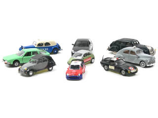 miniatures reproduisant les modèles : CITROEN, PEUGEOT, ALFA ROMEO (en état 'B') & CHRYSLER - on y retrouve les marques : NOREV, SOLIDO, BROOKLIN & ALTAYA