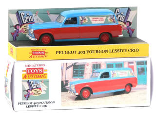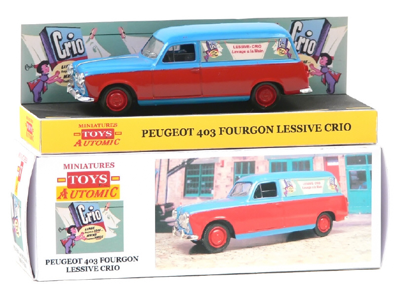 MINIATURES AUTOMIC TOYS (FRANCE) PEUGEOT 403 Fourgonnette 'LESSIVE CRIO' bleu & rouge