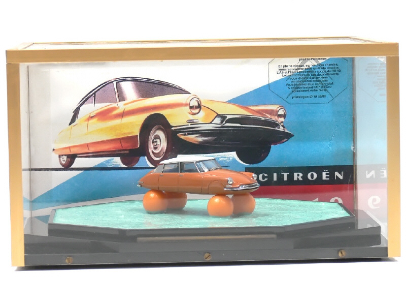 S.GUILLOSSOU (FRANCE) Diorama CITROEN ID 19 'LE SYMBOLE HYDROPNEUMATIQUE 1955/1995' orange, toit blanc