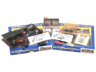 petites échelles - comprend : un modèle rallye (on y joint une coque brut supplémentaire) & 2 berlines - 2 voitures sous forme de kits non montés dont un de la marque UNION avec boîte
