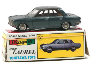 YONEZAWA TOYS DIAPET (JAPON) 185 NISSAN LAUREL 1968 gris bleu métal, intérieur marron clair
