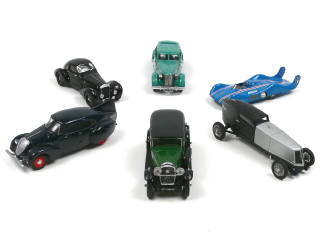 miniatures reproduisant les modèles : RENAULT ETOILE FILANTE, PEUGEOT 402 ANDREAU, DELAGE coupé, BERLIET DAUPHINE, HOTCHKISS AM2 1930 & RENAULT 40CV 1925 - on y retrouve notamment les marques : ELYSEE & CLASSIQUES