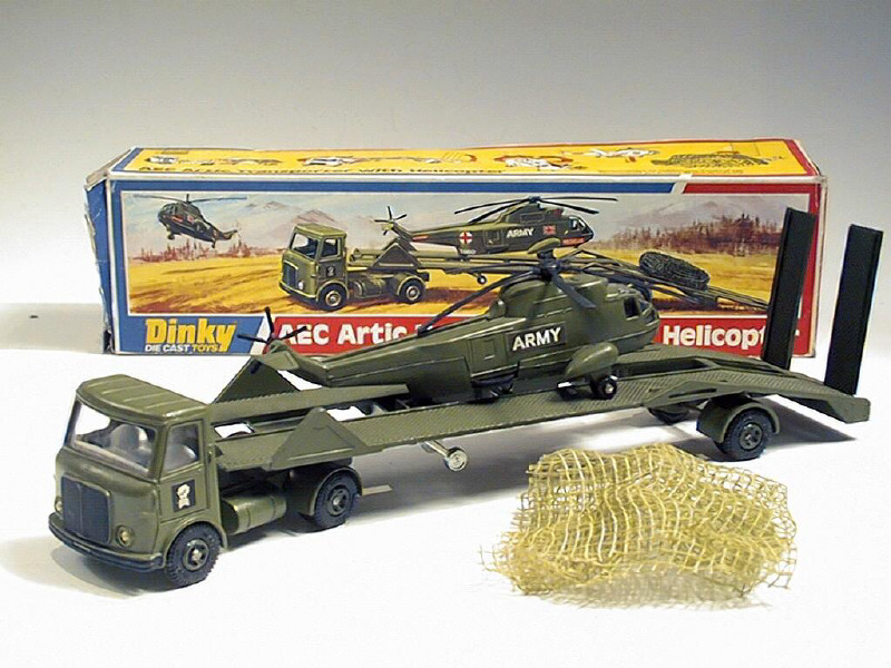 DINKY TOYS (GB) 618 AEC Plateau avec hélicoptère kaki