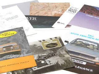 on y retrouve les marques : ROVER, LAND ROVER (dont un rare catalogue militaire), RANGE ROVER, TRIUMPH (AVON), SAAB (cabriolet 900), JAGUAR, AUDI, MERCEDES, VOLKSWAGEN (GOLF) & CITROEN (CX)