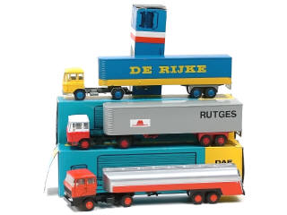 LION-CAR (PAYS-BAS) 36 DAF 2600 Semi-remorque fourgon 'DE RIJKE' jaune & bleu