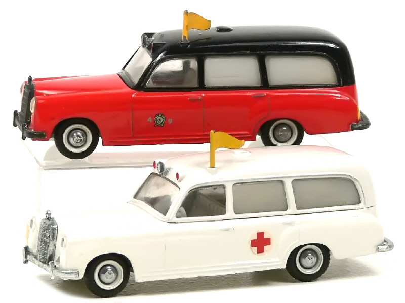 version avec fanion (état 'C'), sans gyrophare, décalques de croix rouge sur fonds blancs apposés sur les portières arrière & le hayon - calandre & pare-chocs légèrement ternis - sirène ternie - doute sur l'authenticité de la calandre & des pare-chocs