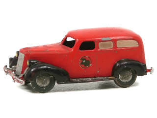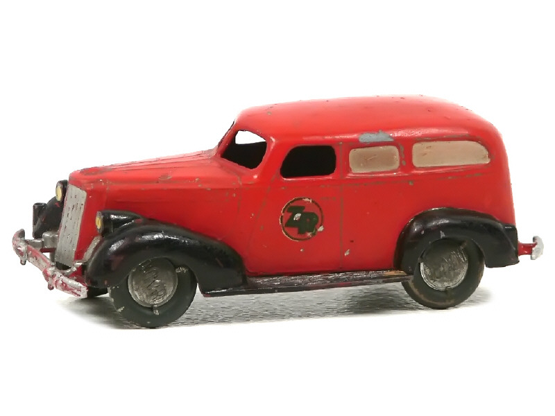 version avec roues métal (ternies) - manque fanion - légères traces d'humidité sur la peinture avec quelques parties craquelées - retouches - pare-chocs arrière & une extrémités de pare- chocs avant recollés - un montant de toit fendu