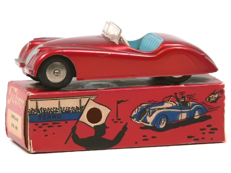 TEKNO (DANEMARK) 801 JAGUAR XK 120 1950 rouge métal, intérieur bleu ciel