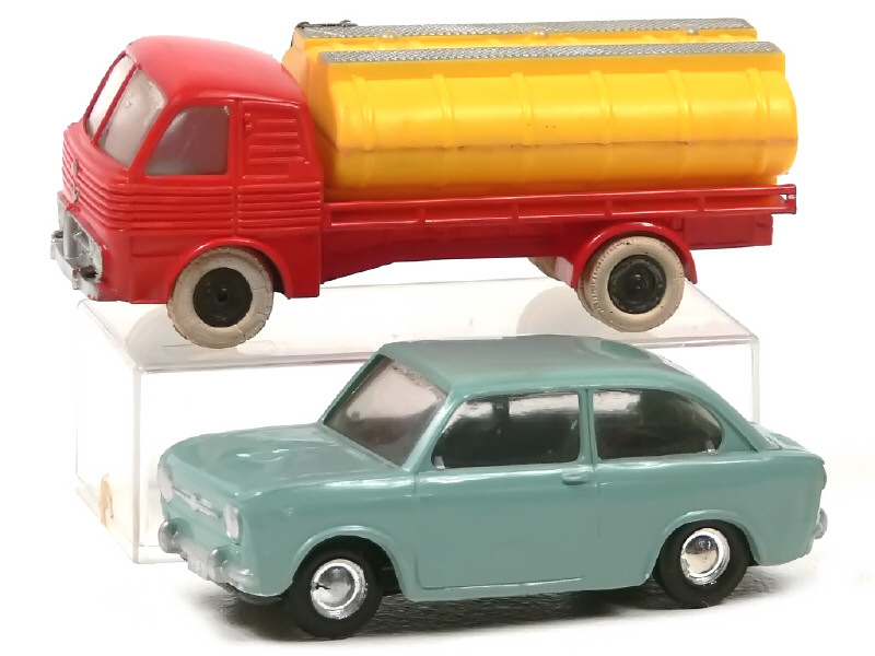 moteur à friction (à revoir) - pneus séchés & craquelés - traces d'oxydation sur l'échelle, un axe de roues & le plancher - une fêlure sur une rambarde - manque publicités