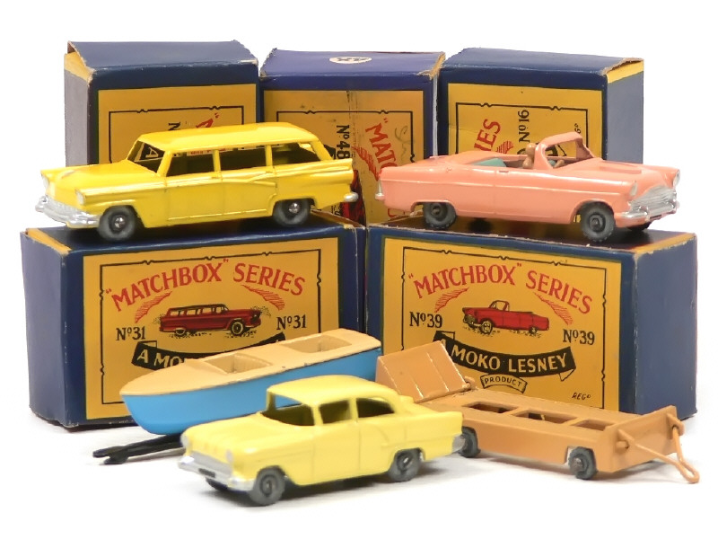 MATCHBOX (GB) Ensemble de 3 voitures, une remorque & un bateau