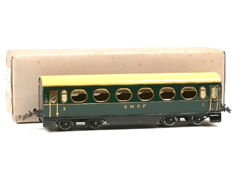 HORNBY 'O' (FRANCE) Voiture de voyageurs 'SNCF' première & 2ème classes vert, toit crème
