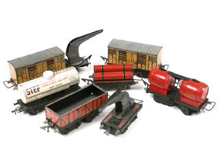 JEP (FRANCE) Ensemble d'un wagon-fourgon avec grue, un wagon-citerne, un wagon-foudre double, un wagon tombereau, un wagon-fourgon, un wagon avec grue & un wagon porte-tubes