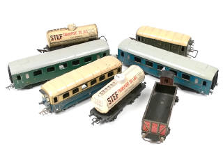JEP (FRANCE) Ensemble de 3 voitures de voyageurs, 2 wagons-citernes, un wagon-fourgon & un wagon-tombereau avec vigie