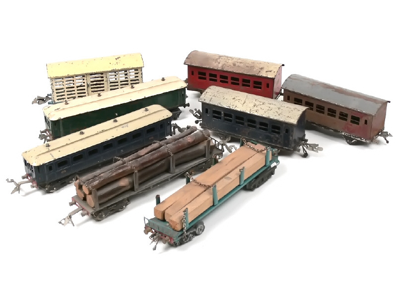 L.R. 'O' (FRANCE) Ensemble de 4 voitures de voyageurs, 2 wagons à ranchers, 3 wagons-fourgon & 4 wagons-tombereaux