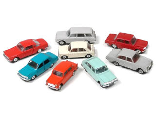 comprend : SIMCA 1500 break, 1500, RENAULT 12, 16, FORD TAUNUS 17 M, FIAT 2300 coupé, 1100 D & AUSTIN 1100 - carrosseries légèrement déformées - 4 véhicules avec jantes fondues