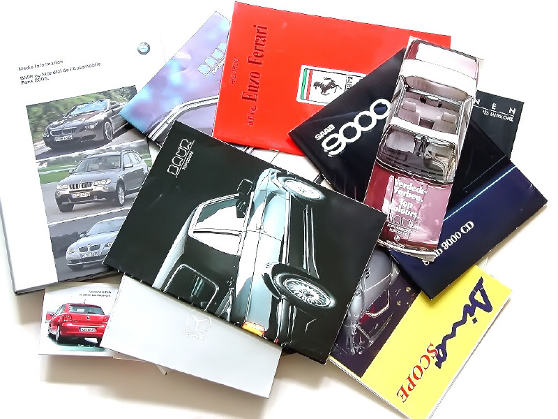 DIVERS Ensemble de 4 catalogues, 2 dépliants, 3 dossiers de presse avec photos & 6 documents automobiles