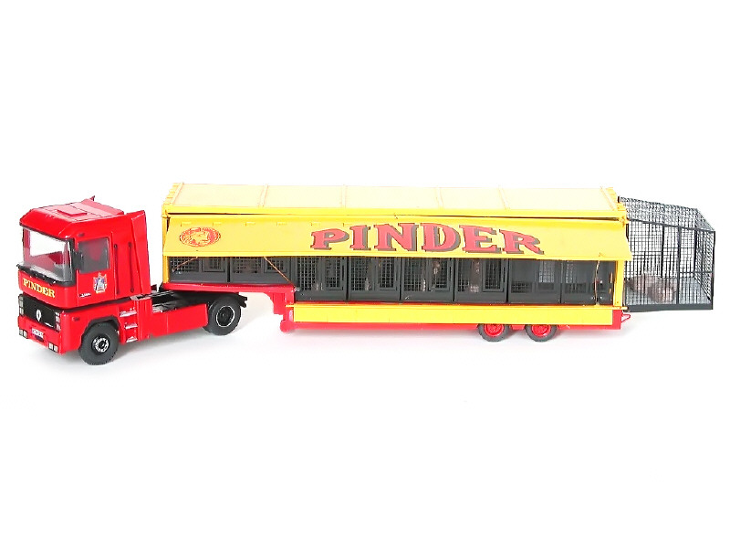 MINICIRQUE (FRANCE) RENAULT AE 385Ti avec semi-cage à fauves avec extension 'PINDER' rouge & jaune