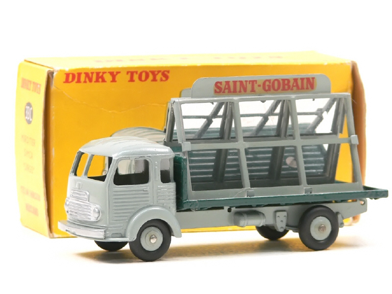DINKY TOYS (FRANCE) 33C SIMCA CARGO Miroitier 'SAINT GOBAIN' (version avec jantes convexes) gris, plateau vert foncé & jantes grises