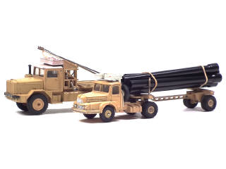 DINKY TOYS (FRANCE) 893 UNIC Saharien transport de pipe-lines (version avec jantes convexes & remorque ajourée) sable & blanc