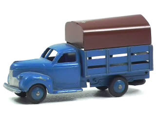 DINKY TOYS (FRANCE) 25L STUDEBAKER Tapissière (avec cabine type 2 & roues à pneus 'M') bleu vif, jantes identiques, bâche marron
