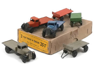 DINKY TOYS (GB) 25T Boîte vide de 3 camions-plateaux avec remorque