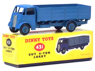DINKY TOYS (GB) 431 GUY 4 tonnes plateau à ridelles hautes bleu ciel, jantes identiques