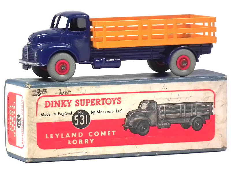 DINKY TOYS (GB) 531 LEYLAND COMET Plateau à ridelles ajourées bleu marine & jaune