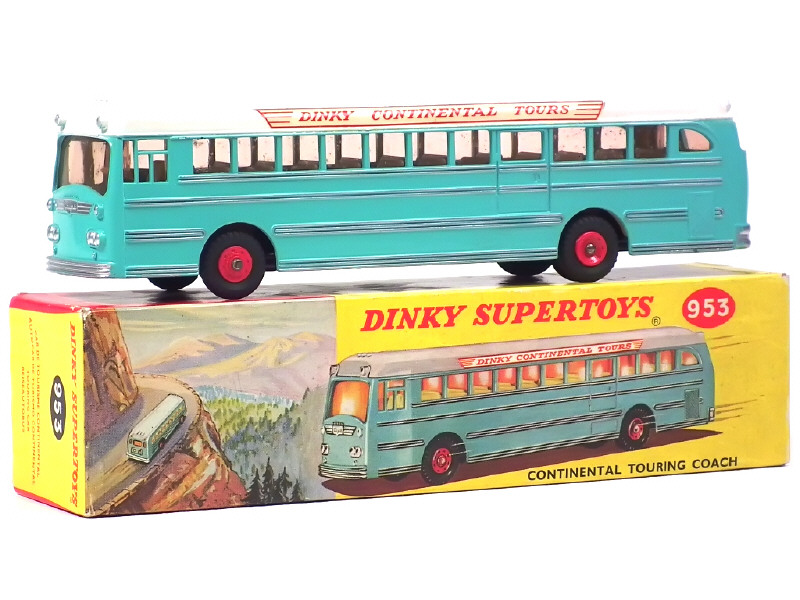 DINKY TOYS (GB) 953 WAYNE Autocar 'DINKY CONTINENTAL TOURS' turquoise & blanc