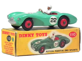 DINKY TOYS (GB) 110 ASTON MARTIN DB 3 S vert pâle, intérieur & jantes rouges