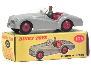 DINKY TOYS (GB) 105 TRIUMPH TR2 gris, intérieur & jantes rouges