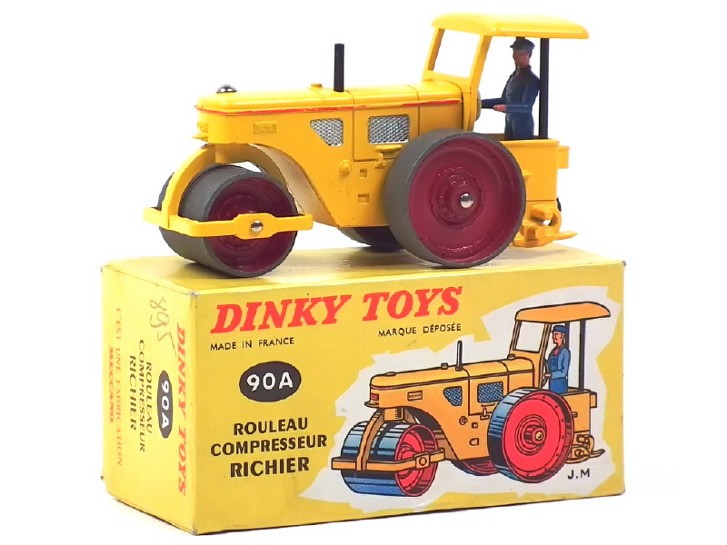 DINKY TOYS (FRANCE) 90A RICHIER Rouleau compresseur jaune & rouge