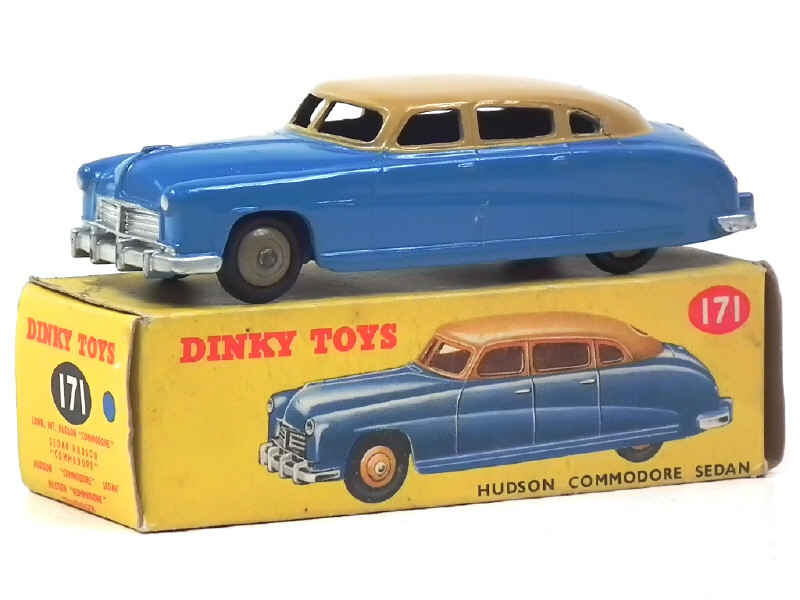 DINKY TOYS (GB) 171 HUDSON COMMODORE Sedan bleu clair & toit beige, jantes mastic
