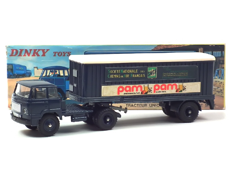DINKY TOYS (FRANCE) 803 UNIC Semi-remorque 'S.N.C.F PAM PAM' bleu foncé, toit crème