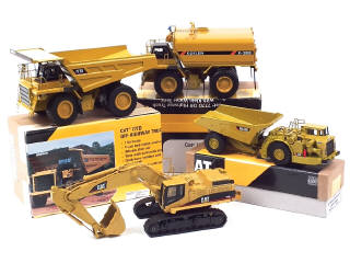 NORSCOT (USA) Ensemble de 4 engins de travaux publics 'CATERPILLAR' ocre