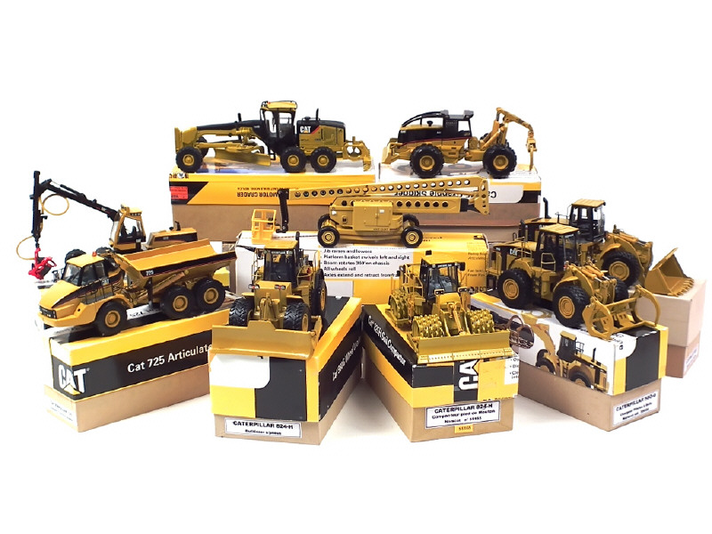 NORSCOT (USA) Ensemble de 8 engins de travaux publics 'CATERPILLAR' ocre