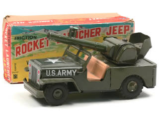 K (JAPON) 192074 ROCKET LAUNCHER JEEP en tôle lithographiée kaki