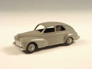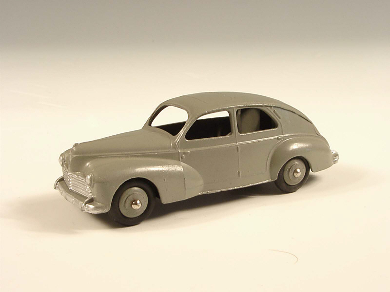 DINKY TOYS (FRANCE) 24R PEUGEOT 203 Petite lunette arrière (version avec intérieur de toit quadrillé & ailes lisses) gris moyen, jantes identiques