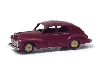 DINKY TOYS (FRANCE) 24R PEUGEOT 203 Petite lunette arrière (version avec intérieur de toit lisse & feu de stop) grenat, jantes crème
