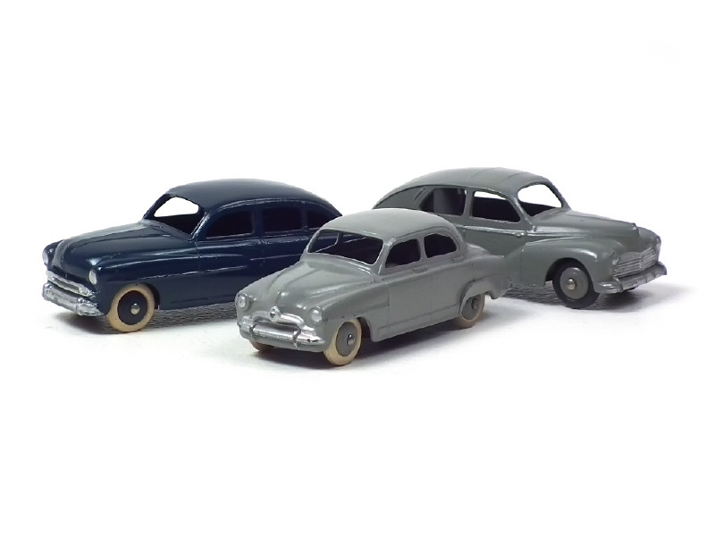 DINKY TOYS (FRANCE) 24R PEUGEOT 203 Petite lunette arrière (version avec intérieur de toit quadrillé & ailes lisses) gris moyen, jantes identiques