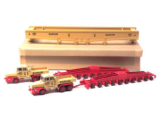 contient : 2 FAUN, 2 remorques à 10 essieux & sellette de chargement (longueur 55,5 cm) - exemplaires d'usine avant commercialisation - TRES BELLE REALISATION !