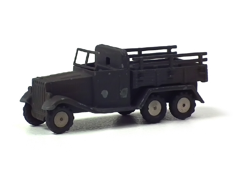 fabrication de 1937 - manque soldats - traces de métal fatigue avec parties cassées & quelques unes recollées - pneus séchés - manques sur la carrosserie