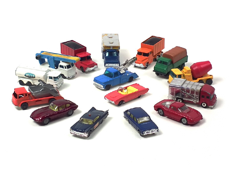états de 'B' à 'D' - miniatures reproduisant notamment les modèles : FORD, ERF, GUY, LAND ROVER, VOLKSWAGEN, FERRARI & JAGUAR - quelques petits manques - suspensions affaissées sur un véhicule