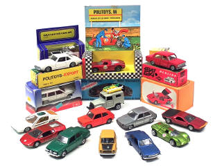 miniatures reproduisant notamment les modèles : AUTOBIANCHI (carrosserie légèrement encrassée avec traces de colle), FERRARI, FIAT (4 exemplaires), GHIA, HOWMET, LAMBORGHINI (2 exemplaires), LOLA, MANTA, OPEL (une petite gravure sur le plancher), TOYOTA, VOLVO & TORPEDO DRAGSTER - on y retrouve les marques : POLISTIL, POLITOYS, MERCURY & MEBETOYS - 8 véhicules avec boîte - petits manques