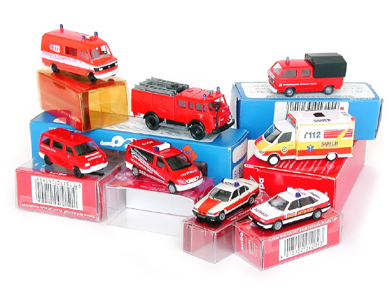 échelle HO - miniatures reproduisant les modèles : MERCEDES, VOLKSWAGEN, STEYR & BMW - on y retrouve notamment les marques : HERPA & ROCO - avec accessoires